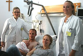 Wenn das kein Grund zur Freude ist: In der Nacht zum Mittwoch, genau um 21.21 Uhr, ist das 1000ste Baby des Jahres 2018 im Klinkum Bayreuth zur Welt gekommen. Der kleine Franz ist 49 Zentimeter groß und 2900 Gramm schwer. Und er hat es gerade so geschafft, das 1000ste Baby zu sein. Denn schon eine Minute später erblickte das nächste Kind das Licht der Welt. „Die Geburt ging schnell und wir sind sehr glücklich“, sagt Mama Anna Eckert aus Weißenstadt. Papa Benjamin Stöcker war bei der Geburt dabei. „Es war sehr bewegend.“ Oberärztin Agne Ozalinskaite (links) und Assistenzärztin Sophia Rösch kümmerten sich um den kleinen Franz und seine Eltern. Bei der Geburt wurden sie von dem Leitenden Oberarzt Milos Popovic, Assistenzärztin Karina Cortez Mendez und Hebamme Karin Gregoire betreut.