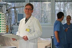 Wenn es um Leben und Tod geht, dann sind es die Anästhesisten, die dafür sorgen, dass alle lebensnotwendigen Organsysteme aufrechterhalten bleiben: Herz und Kreislauf, Sauerstoffversorgung oder Nierenfunktionen. Auch bei Narkosen oder auf der Intensivstation sind sie die Spezialisten im Hintergrund, die alle wichtigen Körperfunktionen im Auge behalten. Und: Sie seien die Ärzte, die keine Pralinen oder Blumen von ihren Patienten bekommen, so beschreibt der neue Chefarzt der Klinik für Anästhesiologie und Intensivmedizin der Klinikum Bayreuth GmbH, Professor Dr. Jörg Reutershan, seinen Berufsstand mit einem Augenzwinkern. Natürlich sei ihm das nicht wichtig, aber er möchte, dass die Patienten wissen, dass sein Fachgebiet nicht ausschließlich Apparatemedizin ist. Es sind Menschen – Ärzte und Pflegekräfte, die bei Notfällen zur Stelle sind und vom Anfang bis zum Ende einer Operation am Kopf des Patienten über alle Körperfunktionen wachen.