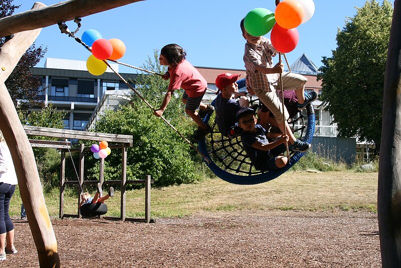 Dort gibt es jetzt zusätzlich zu dem bereits vorhandenen Klettergerüst eine Vogelnestschaukel, Wippen und eine gemütliche Sitzgelegenheit für Eltern. Damit sich kein Kind wehtut, haben die Verantwortlichen der Klinik den Spielplatzboden aufbereiten und mit biologisch einwandfreiem Mulch bedecken lassen. Ebenfalls neu: Der Spielplatz im Patientengarten ist ab sofort öffentlich und nicht wie bislang nur Besucher- und Patientenkindern vorbehalten. Er kann an Wochentagen in der Zeit von 9 bis 18 Uhr von allen Kindern genutzt werden.