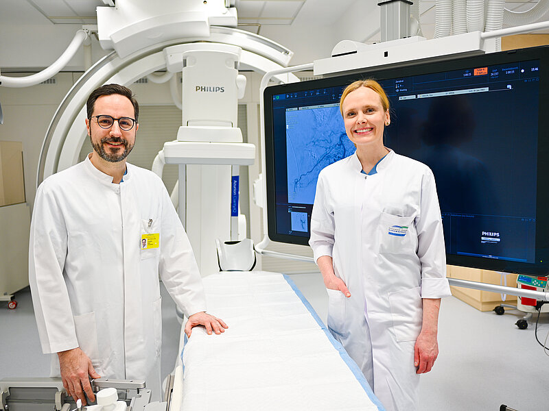 Diese neuartige Therapie führen die Leitende Oberärztin PD Dr. Anne-Marie Augustin und Institutsdirektor Prof. Dr. Thorsten Klink durch. Durch einen gezielten Verschluss von kleinsten Blutgefäßen, die die betroffenen Gelenke versorgen, wird die Durchblutung reduziert, was zu einer erheblichen Schmerzlinderung und Verbesserung der Lebensqualität der Patienten führen kann. „Wir freuen uns, diese innovative Behandlungsmethode nun in unserem Klinikum anzubieten“, sagt PD Dr. Anne-Marie Augustin. „Die transarterielle periartikuläre Embolisation stellt eine wirksame und zugleich sehr schonende symptomatische Behandlungsmöglichkeit der Arthrose dar und bietet unseren Patienten neue Hoffnung auf Schmerzlinderung und verbesserte Mobilität.“
