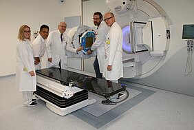Im Kampf gegen Krebs passt die moderne Strahlentherapie die Verteilung der Strahlendosis an die individuelle Anatomie der Patienten so an, dass die maximale Wirkung am Tumor mit der minimalen Belastung der umliegenden Organe verbunden wird. Dafür erstellen die Medizinphysiker gemeinsam mit den Ärzten hoch komplexe und individuell auf jeden Patienten zugeschnittene Bestrahlungspläne. Vor der ersten Strahlenbehandlung am Patienten, prüfen die Medizinphysiker bei einer Probebestrahlung messtechnisch die komplexen Bestrahlungspläne. „Allen unseren Patienten wollen wir ein Höchstmaß an Sicherheit geben und prüfen daher jeden einzelnen Bestrahlungsplan direkt an der Bestrahlungsanlage, noch bevor die Patienten zu ihrer ersten Strahlentherapie zu uns in die Klinik kommen“, sagt Mathias Dierl, Leiter der Medizinischen Physik am Klinikum Bayreuth. Die Realisierung des weltweit ersten Einsatzes des neuartigen Detektors DOLPHIN im Patientenbetrieb unterstreicht das hohe Engagement des achtköpfigen Teams der Medizinischen Physik für mehr Behandlungssicherheit im Klinikum Bayreuth. „In enger Abstimmung mit den Experten des Klinikums Bayreuth konnten wir in der Einführungsphase die notwendigen Prüfungen für den neuen Detektor DOLPHIN im klinischen Betrieb zügig und erfolgreich abschließen“, beschreibt Dr. Lutz Müller, Leiter des Internationalen Kompetenzzentrums der IBA Dosimetry GmbH, die enge Zusammenarbeit mit der Klinikum Bayreuth GmbH.