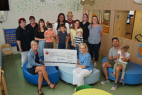 Der Tag der Gebäudereinigung Anfang Juni an der Klinikum Bayreuth GmbH hat Langzeitwirkung: 800 Euro haben Nicole Wolf, Lilian Tröger, Eva Degen, Edith Schaller und Kerstin Hagen von der Klinikum Bayreuth Dienstleistungsgesellschaft jetzt an die Klinik für Kinder und Jugendliche gespendet. Diese stolze Summe war bei einer Tombola zusammengekommen. Sandra Retsch, Leiterin der Kinderklinik-Notaufnahme, dankte den Kolleginnen für ihre Initiative. „Mit dieser Unterstützung können wir wieder viele Packs mit Zahnbürste, Zahncreme und anderen schönen und nützlichen Dingen beschaffen.“ Diese Packs sind für kleine Patientinnen und Patienten gedacht, die ungeplant in der Klinik bleiben müssen. Den Malwettbewerb, der ebenfalls zum Programm des Tags der Gebäudereinigung am Klinikum gehörte, haben drei Jungs gewonnen: Janosch, Samuel und Hans waren mit ihren Eltern gekommen und freuen sich über Gutscheine für Spielzeug.
