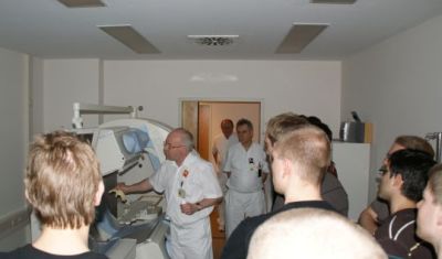 Eine Führung durch die Abteilung schloss sich an, auf der die Vorgehensweise bei der Krebstherapie erläutert wurde. Im Anschluss konnte das PET-CT des Klinikums Bayreuth besichtigt werden und nach einer Führung durch die Abteilung für Nuklearmedizin wurde der informationsreiche Tag für die Studierenden beendet.