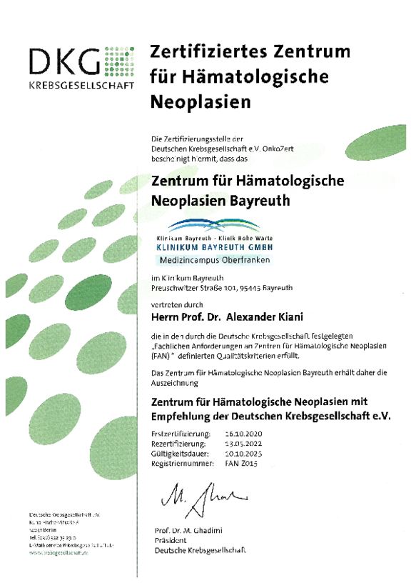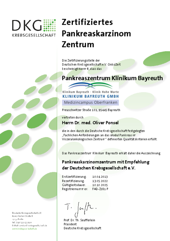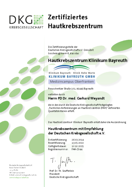 Besonderes Zeichen des hohen Qualitätsstandards sind zertifizierte und somit von externen Experten regelmäßig begutachtete Bereiche und Zentren der Klinikum Bayreuth GmbH.